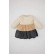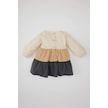 Defacto Kız Bebek Renk Bloklu Uzun Kollu Keten Görünümlü Elbise C0767A524SPBG65 Bej