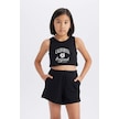 DeFacto Kız Çocuk 2'li Takım Baskılı Atlet Şort E4897A825SMBK81 Siyah