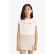DeFacto Kız Çocuk 2'li Takım Baskılı Kolsuz Tişört Şort Etek E1260A825SMER233 Ekru