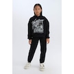 DeFacto Kız Çocuk 2'li Takım Kapüşonlu Baskılı Sweatshirt Beli Lastikli Jogger Alt D2219A824WNBK81 Siyah