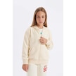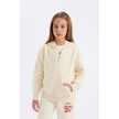 DeFacto Kız Çocuk Basic Düz Kapüşonlu Fermuarlı Cepli Okul Hırkası C8110A824AUER134 Ekru