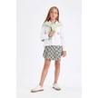 DeFacto Kız Çocuk Beli Lastikli Pileli Ekose Şort Etek C7296A824AUGN1116 Yeşil