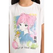 Defacto Kız Çocuk Bisiklet Yaka Anime Baskılı Kısa Kollu Tişört E0350a825smwt34 Beyaz