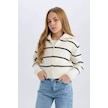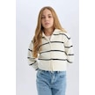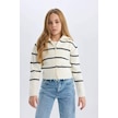 DeFacto Kız Çocuk Çizgili Fermuarlı Triko Hırka D1387A824WNER233 Ekru