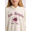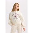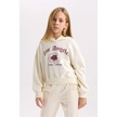 DeFacto Kız Çocuk Ekru Oversize Geniş Kalıp Kapüşonlu Baskılı Sweatshirt D7041A824WNER99