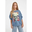 Defacto Kız Çocuk Hatsune Miku Relax Fit Bisiklet Yaka İçi Yumuşak Tüylü Sweatshirt D1120a824auın242 İndigo
