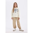 DeFacto Kız Çocuk Kargo Cepli Beli ve Paçası Lastikli Pamuklu Paraşüt Pantolon C8843A824AUBG203 Bej