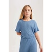 DeFacto Kız Çocuk Kısa Kollu Uzun Tulum B4637A824SMBE455 Mavi