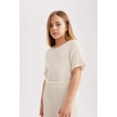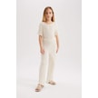 Defacto Kız Çocuk Kısa Kollu Uzun Tulum B4637A824SMER238 Ekru