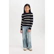 DeFacto Kız Çocuk Lacivert Çizgili Fitted Bisiklet Yaka Triko Kazak D1392A824WNNV241 Lacivert