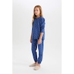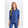 DeFacto Kız Çocuk Pijama Takım Desenli Uzun Kollu Üst Beli Lastikli Uzun Alt D7746A824WNIN59 İndigo