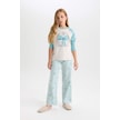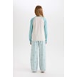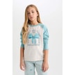 DeFacto Kız Çocuk Pijama Takımı Bisiklet Yaka Baskılı Uzun Kollu Üst Çizgili Uzun Alt D6059A824AUGN1209 Yeşil