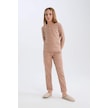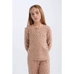 DeFacto Kız Çocuk Pijama Takımı Fitilli Kaşkorse Desenli Bisiklet Yaka Uzun Kollu Üst Uzun Alt D7748A824WNBG389 Bej