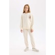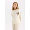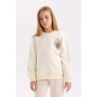 DeFacto Kız Çocuk Relax Fit Bisiklet Yaka Baskılı İçi Yumuşak Tüylü Sweatshirt D4272A824WNER233 Ekru