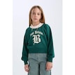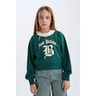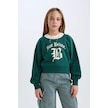 DeFacto Kız Çocuk Relax Fit Bisiklet Yaka Baskılı İçi Yumuşak Tüylü Sweatshirt D7042A824WNGN1116 Yeşil