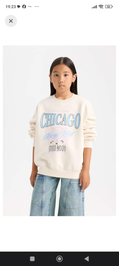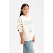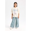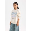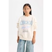 DeFacto Kız Çocuk Relax Fit Bisiklet Yaka Baskılı Sweatshirt D7046A824WNER99 Ekru