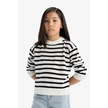 Defacto Kız Çocuk Standart Fit Bisiklet Yaka Çizgili Triko Kazak C6903a825aubk27 Siyah