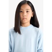 Defacto Kız Çocuk Standart Fit Bisiklet Yaka Triko Kazak C6902a825aube366 Mavi