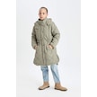 DeFacto Kız Çocuk Su İtici Kapüşonlu Fermuarlı Çıtçıtlı Cepli Uzun Mont Parka C8974A824AUKH461 Haki