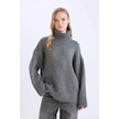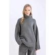 DeFacto Oversize Geniş Kalıp Balıkçı Yaka Basic Düz Triko Kazak Tunik A6445AX24CWAR192 Antrasit