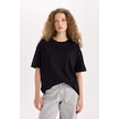 DeFacto Oversize Geniş Kalıp Basic Düz Bisiklet Yaka Kısa Kollu Siyah Tişört V4136AZ25SMBK81