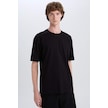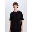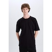DeFacto Oversize Geniş Kalıp Bisiklet Yaka Basic Düz Kısa Kollu Siyah Tişört E6885AXNSBK81