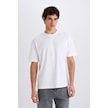 DeFacto Oversize Geniş Kalıp Bisiklet Yaka Basic Düz Kısa Kollu Beyaz Tişört E6885AXNSWT34