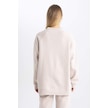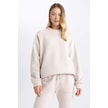 Defacto Oversize Geniş Kalıp Bisiklet Yaka Kalın Basic Düz Casual Sweatshirt V2697AZ23WNBG187 Bej