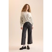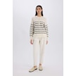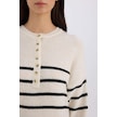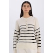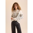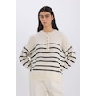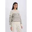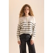 DeFacto Oversize Geniş Kalıp Düğmeli Yaka Çizgili Triko Kazak D4913AXNSER105 Ekru