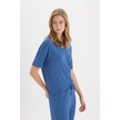 DeFacto Pijama Takımı Fitilli Kaşkorse Kısa Kollu Üst Esnek Belli Kapri Boy Alt-Fall in Love E0865AX25SPIN33