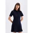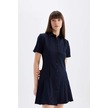 Defacto Polo Yaka Basic Düz Kısa Kollu Pileli Mini Elbise D4203AX24AUNV245