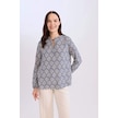 DeFacto Regular Fit Bağcıklı Yaka Desenli Uzun Kollu Bluz N1809AZ25SPIN247