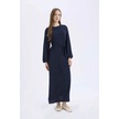 DeFacto Regular Fit Bisiklet Yaka Basic Düz Kuşaklı Aerobin Uzun Kollu Elbise E5268AX25SPNV135