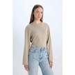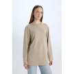 Defacto Regular Fit Bisiklet Yaka Basic Düz Uzun Kollu Tişört Tunik D4897AX24WNKH479 Haki