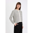 Defacto Regular Fit Bisiklet Yaka Çizgili Düğmeli Triko Hırka C9051AX24WNER105 Ekru