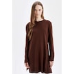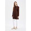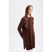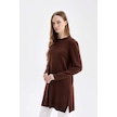 Defacto Regular Fit Bisiklet Yaka Yandan Yırtmaçlı Basic Düz Kazak Tunik H3431AZ24AUBN468 Kahverengi