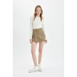 DeFacto Regular Fit Normal Bel Kargo Cepli Gabardin Şort Etek D4991AX24AUKH474 Haki