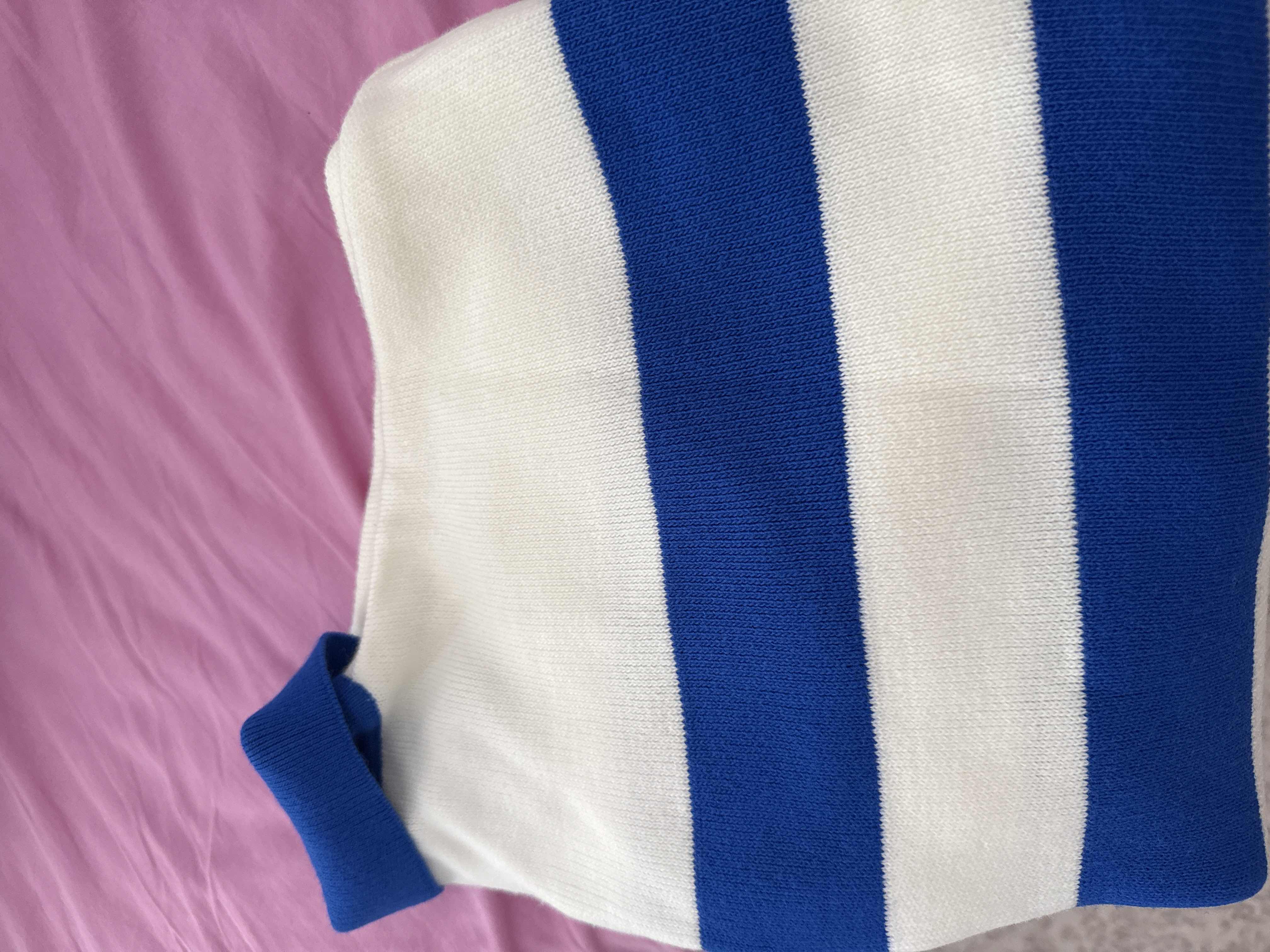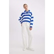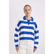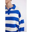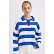 Defacto Regular Fit Polo Yaka Düğmeli Çizgili Triko Kazak A2357AX24WNBE64 Mavi
