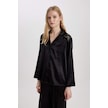 DeFacto Regular Fit Uzun Kollu Saten Casual Pijama Üstü-Fall in Love B6198AX24SPBK27