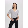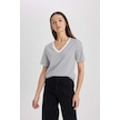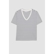 Defacto Regular Fit V Yaka Çizgili Kısa Kollu Tişört X2715AZ24SMBK81 Siyah