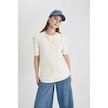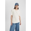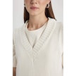 Defacto Regular Fit V Yaka Triko Süveter B8371AX24SPER133 Ekru