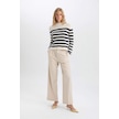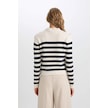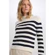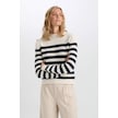 DeFacto Regular Fit Yumuşak Dokulu Bisiklet Yaka Düğmeli Çizgili Triko Kazak C9055AX24WNER105 Ekru