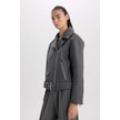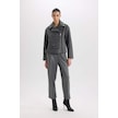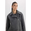 DeFacto Regular Kalıp Ceket Yaka Cepli Kemerli Fermuarlı Kısa Kaşe Kaban B8830AX25SPAR153 Antrasit