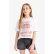 DeFacto Relax Fit Bisiklet Yaka Baskılı Kısa Kollu Kız Çocuk Tişört E0355A825SMWT34 - Beyaz