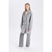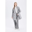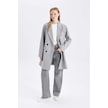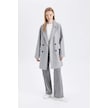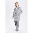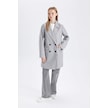 DeFacto Rüzgar Geçirmez Uzun Kaşe Kaban Oversize Geniş Kalıp Kruvaze Yaka Düğmeli A0922AX24WNGR2 Gri