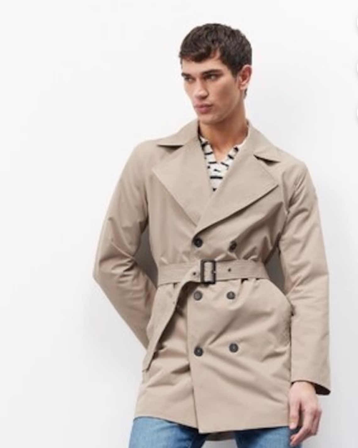 DeFacto Slim Fit Dar Kesim Düğmeli Kemerli Trençkot D5528AX25SPBG193 Bej