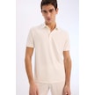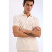 DeFacto Slim Fit Dar Kesim Polo Yaka Dokulu Kısa Kollu Krinkıl Beyaz Tişört E1222AX25SMWT32