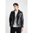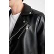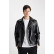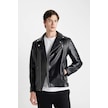 Defacto Slim Fit İnce Suni Deri Mont Ceket Dar Kesim Fermuarlı Üç Cepli Astarlı Mevsimlik Hafif C5715AX24AUBK27 Siyah