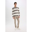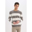 DeFacto Standart Fit Bisiklet Yaka Çizgili Triko Kazak D1968AX24AUGR308