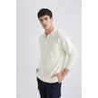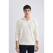 DeFacto Standart Fit Normal Kesim Bato Yaka Fermuarlı Basic Düz Triko Kazak B9706AX24AUER42